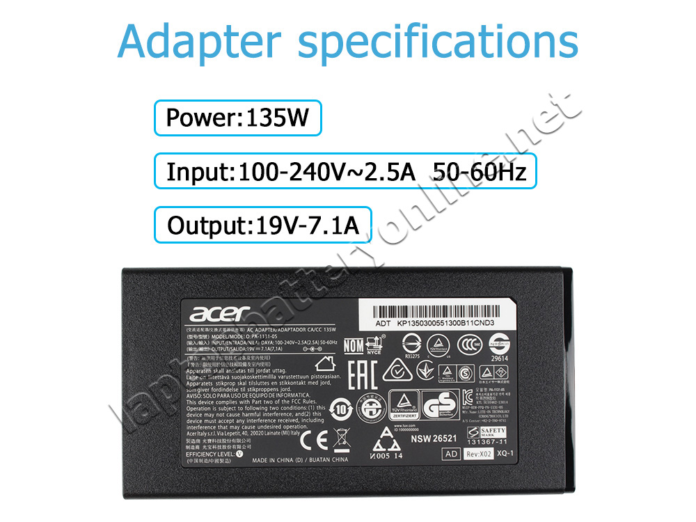 | Acer KP.1350H.001 | Acer Chicony A18-135P1A | Acer Liteon PA-1131-26 | Acer ADP-135NB B |