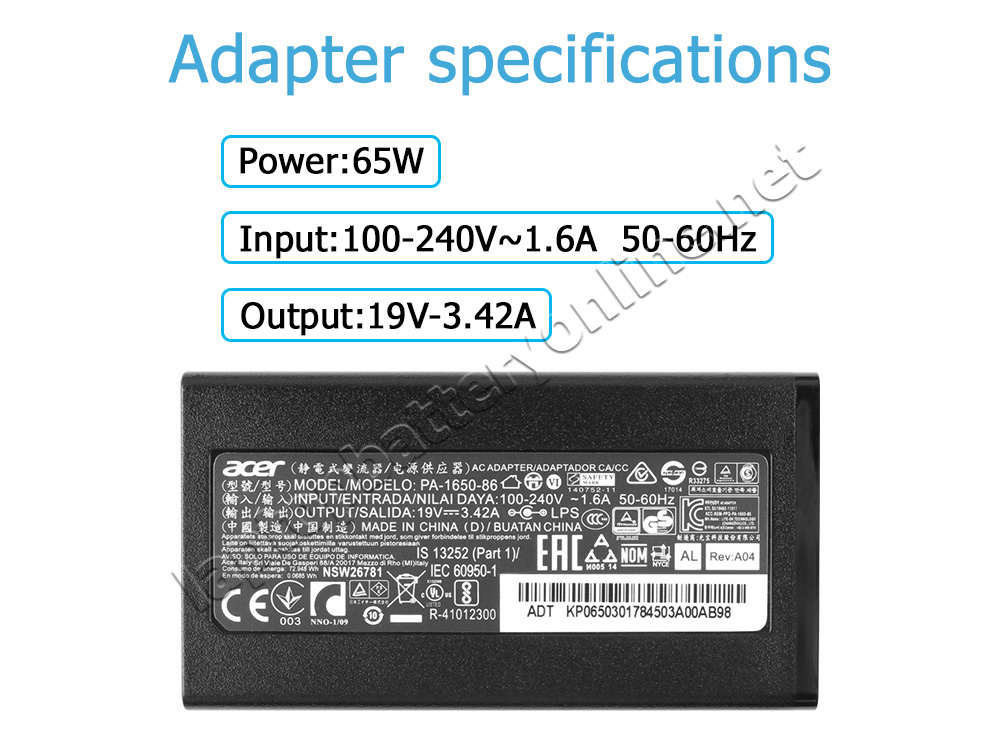 - Model: CALB-Acer-19V-3.42A-3.0-1.0mm-logo-2576