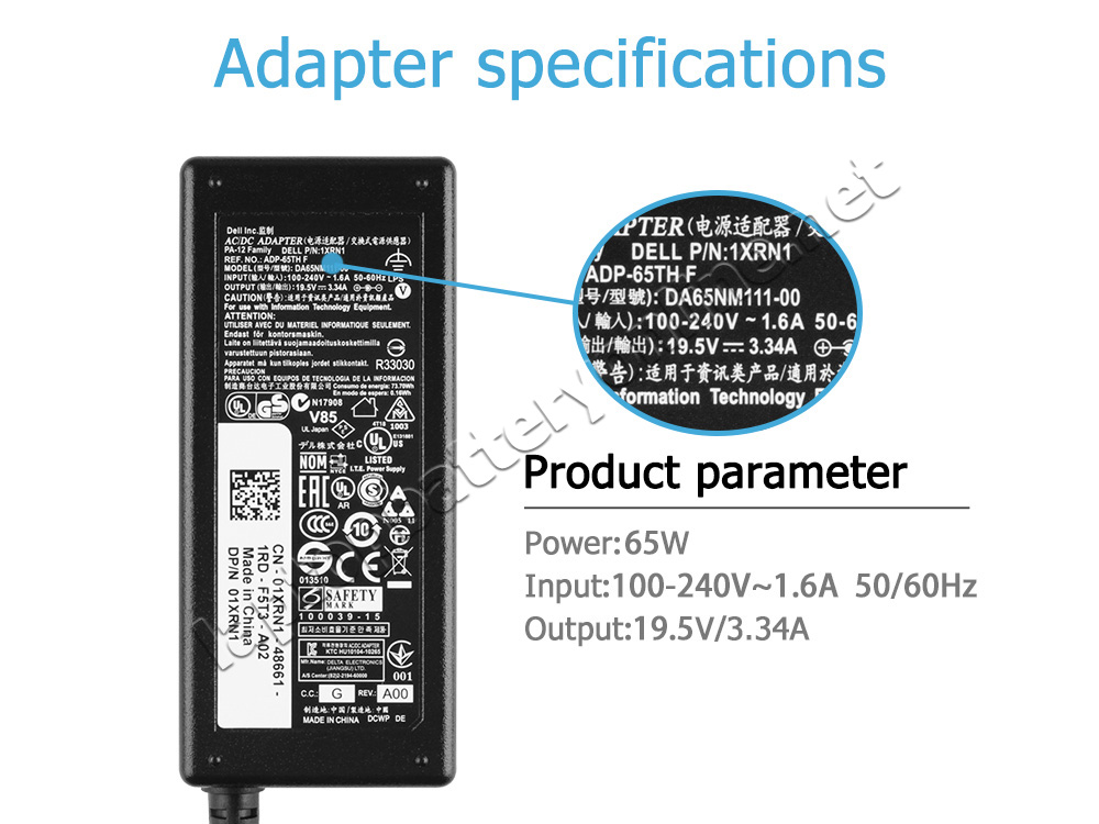 - Model: CALB-Dell-19.5V-3.34A-7.4-5.0mm-197